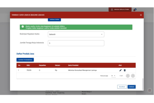 Setelah memasukkan KBLI baru, periksa kembali semua data yang telah diubah untuk memastikan tidak ada kesalahan.